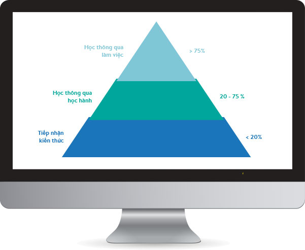 Phương pháp này dựa trên mô hình Kim Tự Tháp học tập, trong đó thể hiện phần trăm hiệu quả ghi nhớ kiến thức và ứng dụng của người học của các hình thức đào tạo khác nhau.